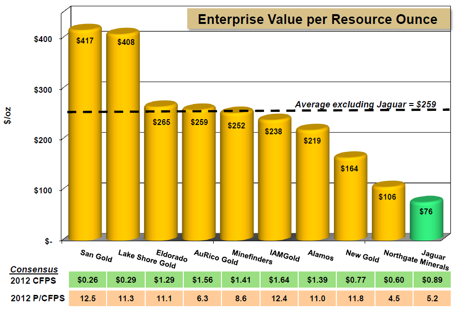 - Jaguar is cheap is you look ahead at the potential if they turn around Turmalina and bring Caete up to expectations