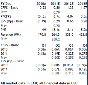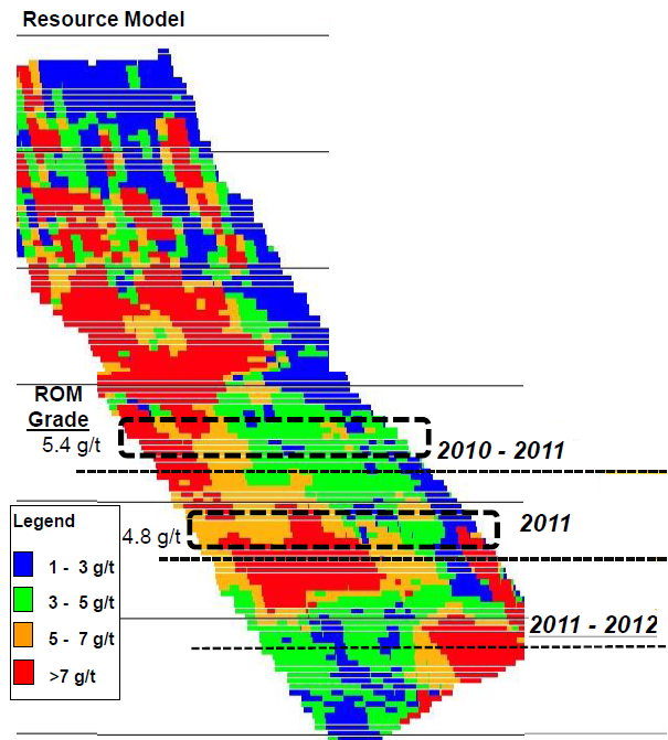 On the Q1 2011 conference call the company confirmed that progress had continued. The level of dilution in Q1 was 12% and thus far in Q2 it had been steady at that level. They were on track for having 18 months worth of developed stopes in their inventory by year end. And grades, which had improved significantly from Q4 to Q1, were said to have continued to improve in Q2.
