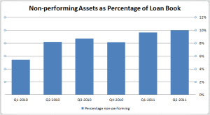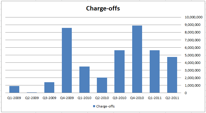 Second, delinquent loans have been coming down, as have charge-offs. On the Q2 conference call management talked of definitively turning the corner on their nonperforming loan issues. They also suggested that new loan growth would begin to kick in soon.