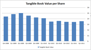 Finally, the company is trading at a severe discount to book value. Tangible Book value is $3.57, meaning that the stock is trading at about 39% of tangible book. Moreover, unlike some banks, tangible book hasn’t proven to be a continuously shrinking metric. Book value has remained relatively constant for over a year now.