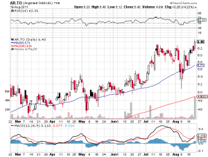 The positive move in gold stocks yesterday more than offset the losses I had in my non-gold holdings. Coastal Energy and Arcan Resources were both down a couple percent. Gramercy Capital and Equal Energy were down less than a percent. Leader Energy Services is looking more and more like a terrible mistake, and was down more than 5%. My small position in Community Banker Trust took a drubbing, down 10%, though I don’t know why?