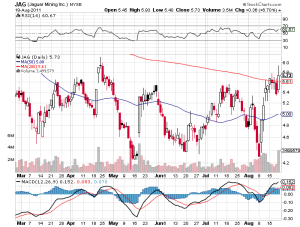 On the bright side, the gold stocks that I own broke out yesterday. Jaguar Mining was up 6%. Argonaut gold was up 4%. Lydian International was up 4%. Even OceanaGold was up 4%, and at one point was up more than 10%. When I saw Jaguar Mining up first thing in the morning I added to my positions in Argonaut and OceanaGold. I reasoned that if Jaguar is on the move, then something must be up.