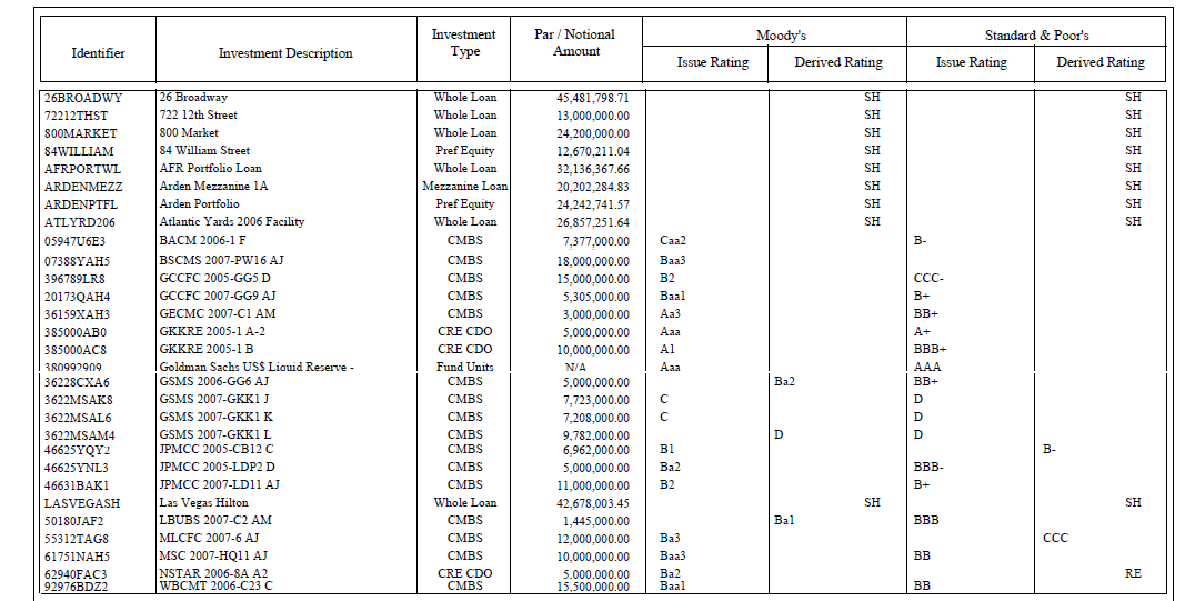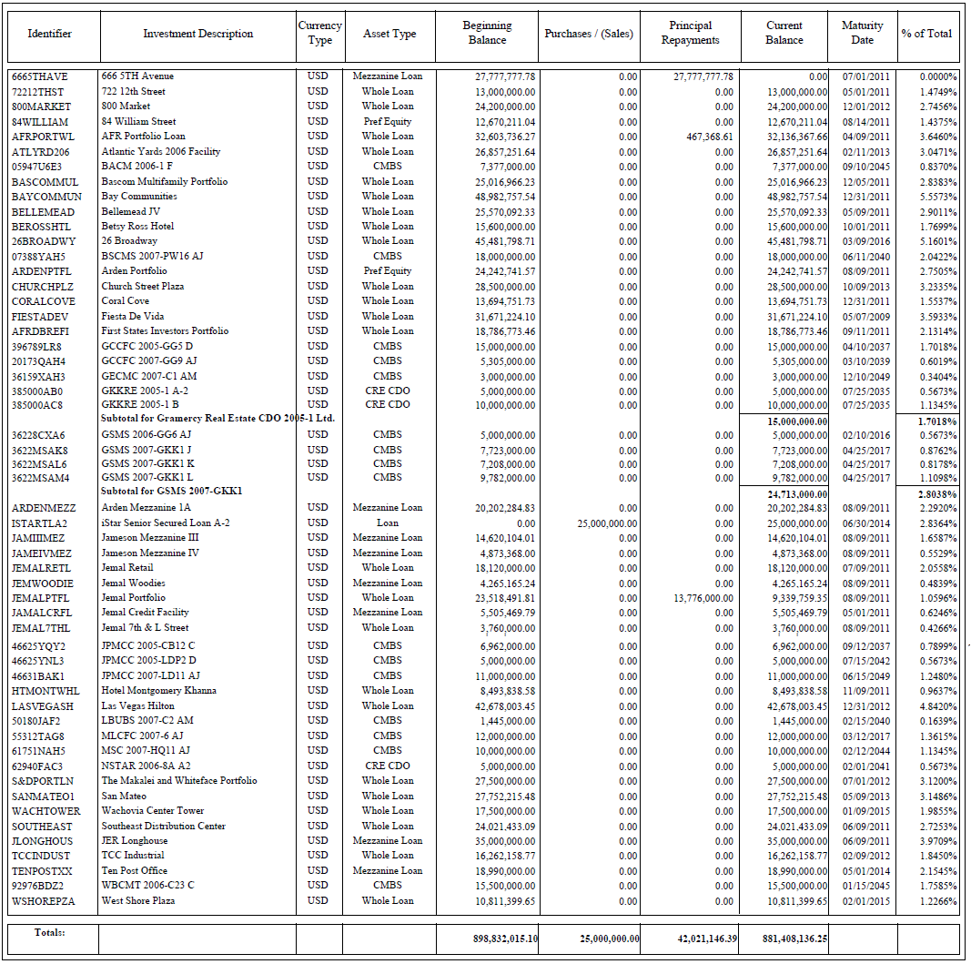Ok, so first of all, the 3 CDO notes from Gramercy 2007 can be ignored. CDO-2007 is a lost cause, and so the fact that these 3 notes are being valued at about 10% is probably right.