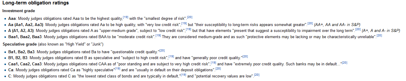 Moody’s ratings system is as follows (taken from Wikipedia):