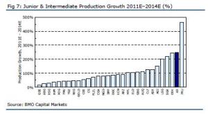 This is particularly perplexing, I would say, given the relatively low capital cost associated with bringing the mine into production. Below is where Argonaut sits on an earnings and cash flow basis in the BMO universe.