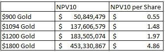 I spent a couple of hours working through the August 2010 PEA that Argonaut released on San Antonio. I looked at how the economics of the project would be affected by higher gold prices. Below are the NPV10 results that I determined (the full analysis is available here).