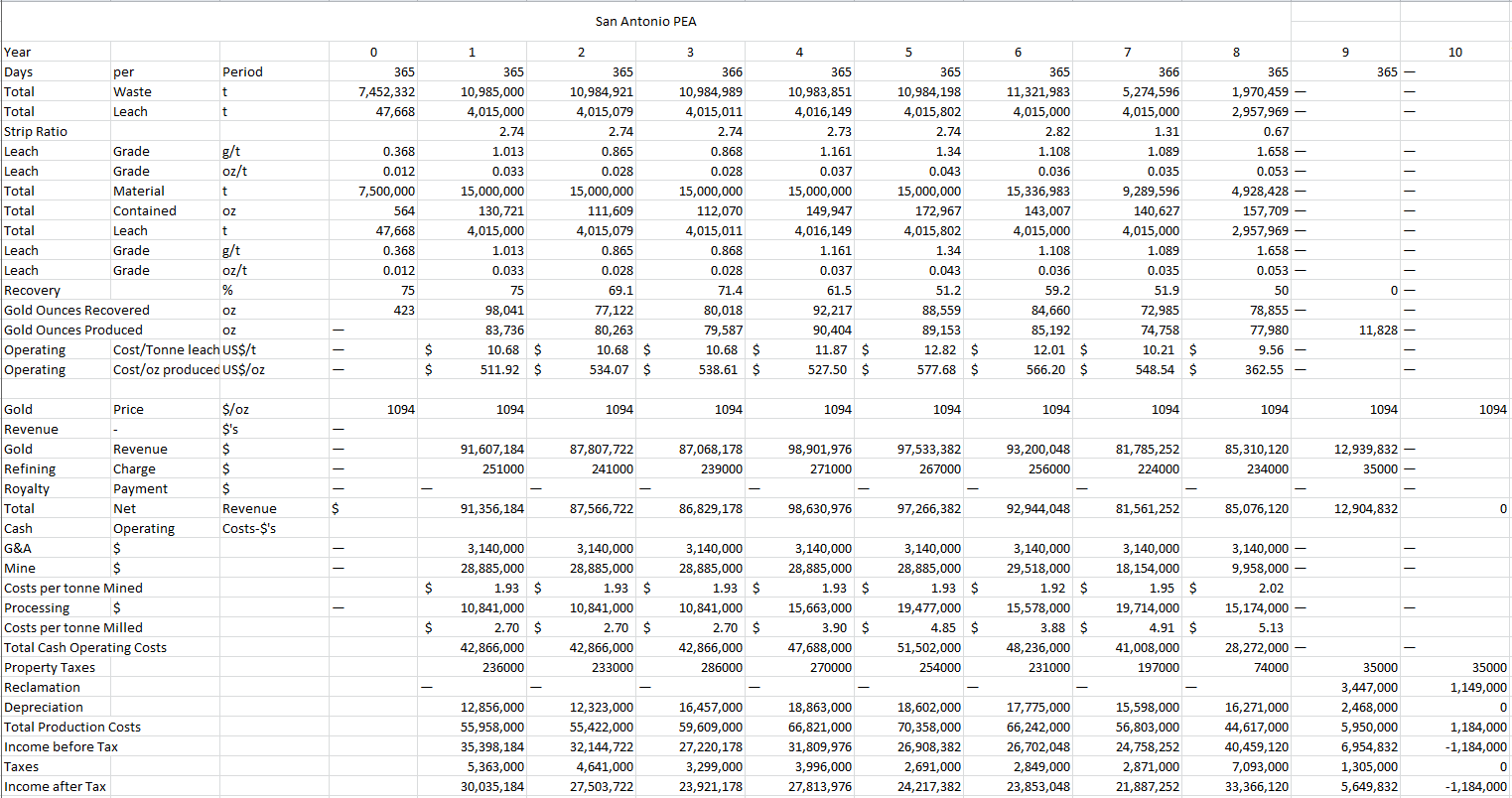 While Rule was referring to non-producing juniors, the same could be said for producing juniors with a pipeline of projects like Argonaut Gold. And San Antonio is a poster child for just that kind of valuation mismatch.