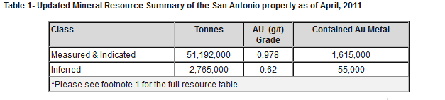 Both of these projects will have a material impact to Argonauts production profile, but the San Antonio is the bigger of the two. Once built, San Antonio has the potential to produce 80,000-90,000 oz of gold a year at $500/oz. The study (by AMEC) that developed that production profile was based on a resource of 1.2Moz. Recent drilling at San Antonio has discovered an additional new zone with potential and the resource has grown to 1.6Moz.