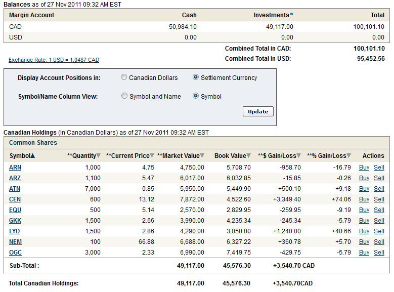 On Monday in the mid afternoon Arcan released third quarter results that I was less than impressed with. I was lucky enough to receive a google alert on the earnings release before the market fully reacted. I quickly halved my stake in Arcan in my on-line portfolio.