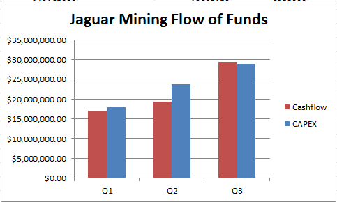 I can point to a number of reasons for getting out of Jaguar Mining. At the top of that list is the company’s inability to generate free cashflow, even though the gold price has risen some 40% over the past 9 months. The way that Jaguar has managed to match any increases in operating cash flow with correpsonding increases in capital outlays is uncanny.