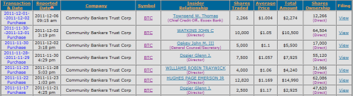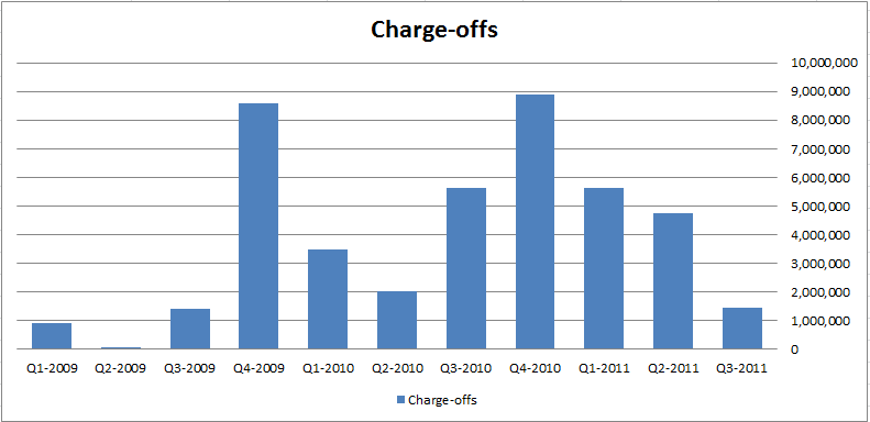 In the case of Community Bankers Trust, the 3rd quarter brought the first profitable quarter in quite a while. It also showed a continuation of the trend towards less charge-offs.