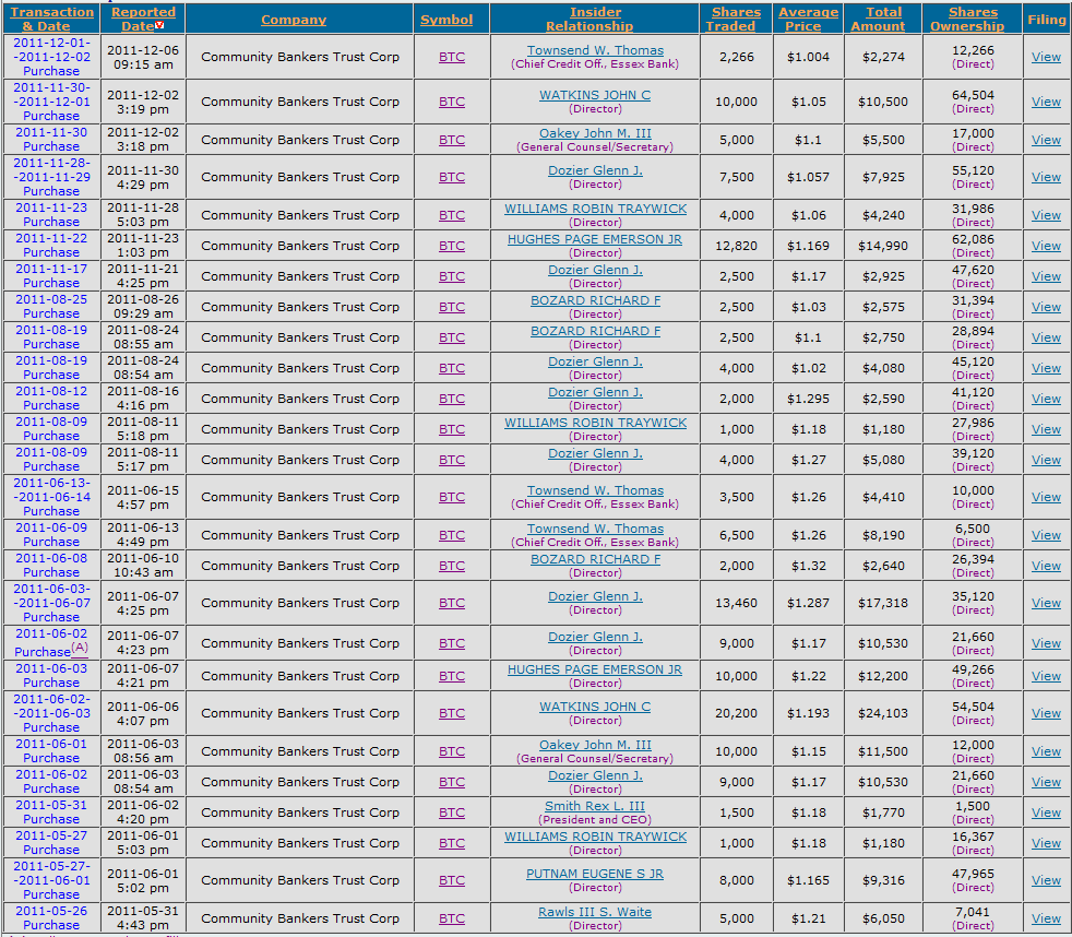 BTC trades at less than a third of tangible book value ($3.67) at this point. Meanwhile, insiders continue to buy shares.