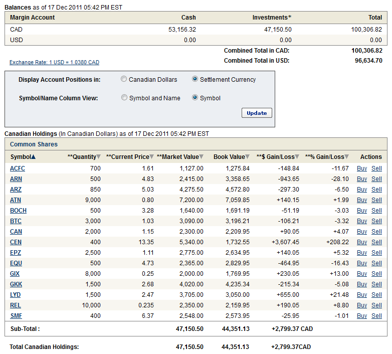 I feel reasonably comfortable holding story stocks like Atna Resources and Lydian International (I also started a position in Esperenza Resources this week, though not in my online portfolio). I feel less comfortable with Newmont, which is basically a play on the price of gold. The same case can be made to a lessor extent with Aurizon Mines (though the reason to hold onto Aurizon is an eventual consolidation of the gold sector).