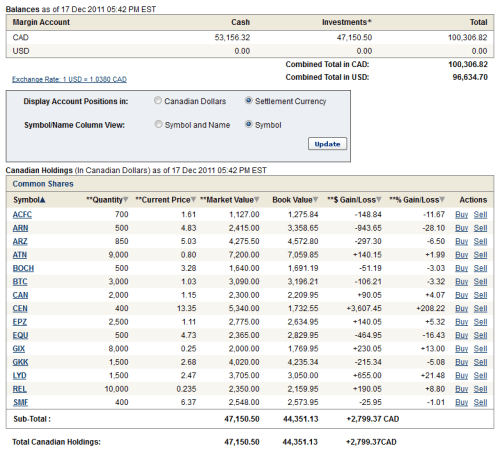 I was listening to BNN last week and I caught Contra The Herd’s Benj Gallander’s top picks. One of them was Bank of Commerce Holding (BOCH on the Nasdaq). I did some work this week on the company and it looked cheap (less than 10x earnings, trading at about 50% of tangible book), it had a reasonable level of nonperforming loans (3.3%), and it has the potential for better earnings in the future once it works its way through its loan loss write-downs. So I bought some.