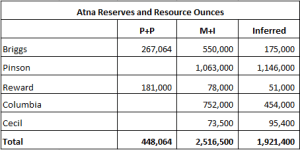 I have been working through an analysis of Atna and while I am not quite ready to post that analysis, I am ready to say that I believe Atna is the best way of playing a bet on sustainable gold prices at $1500/oz or higher. As I have dug deeper into the company I have been surprised with just how many assets they have. In addition to a producing mine (Briggs) and a low capital cost, high grade development (Pinson), they have over 1Moz of gold in Montana (Columbia), 300Koz of oxidized resource and based on recent drill results more to come at Reward, and another 150Koz of oxidized resource a few miles away from Briggs at Cecil. And those are just the properties with a known resource. In addition they have a score of properties with exploration potential, including a few that are signed off as JV’s to be drilled using other people’s money.