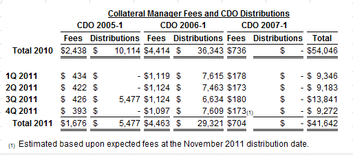 “In addition, as of September 30, 2011, the Company holds an aggregate of $54.0 million of par value Class A-1, A-2 and B securities previously issued by the Company’s CDOs that are available for re-issuance. The fair value of the repurchased CDO bonds is approximately $40.3 million as of September 30, 2011.”