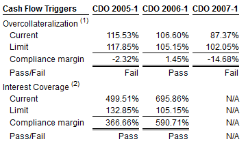 The deal is that CDO-2005 failed its over-collateralization test again in October after having passed it the previous quarter.