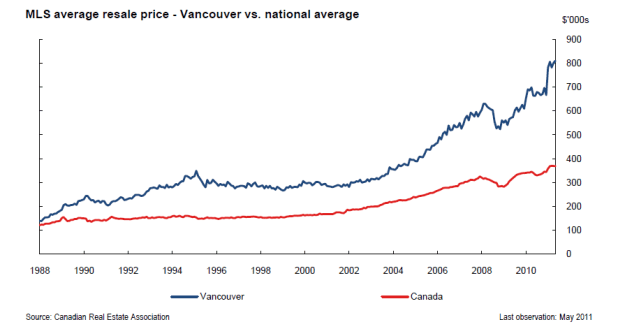 One other chart from the same report. Below is the average house price in Vancouver: