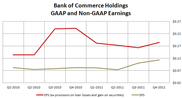 I’m not sure about Bank of Commerce Holdings. I don’t have a large position in the stock. I don’t love where the bank is based (around Sacramento California) and I don’t like how non-performing loans are rising at all. As CalculatedRisk pointed out recently, there aren’t any signs of things improving in Sacramento yet.