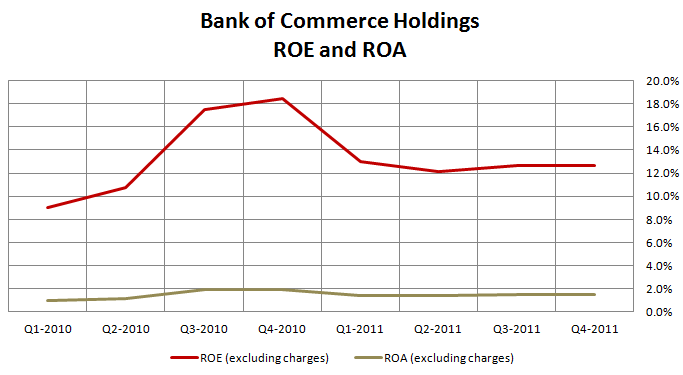 Note that my estimates of ROE and ROA exclude provisions from loan losses, losses on real estate owned and one time investment gains so they are somewhat higher than the posted numbers in the news release.