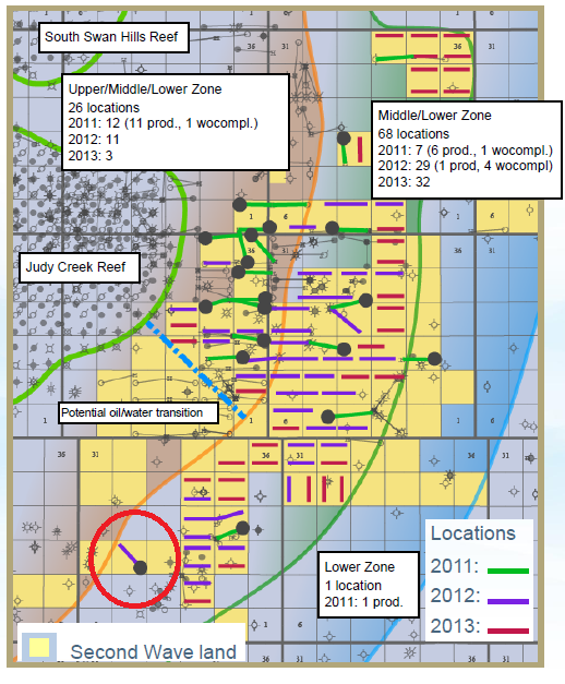 [Second Wave] completed its 100% working interest 01-17-062-10W5 Beaverhill Lake light oil well in south Judy Creek with an initial two day flow test rate estimated at 800 bbl/d of light oil further delineating the Company’s south Judy Creek land base.