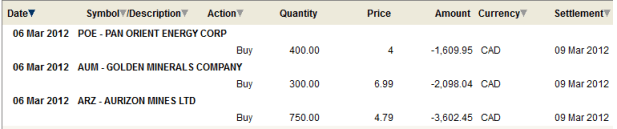 I also added to Pan Orient. This will be the last time that I add until I see the stock begin to rise again. For the time being I will sit tight with what I own.
