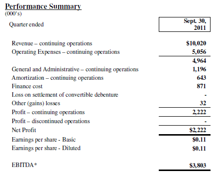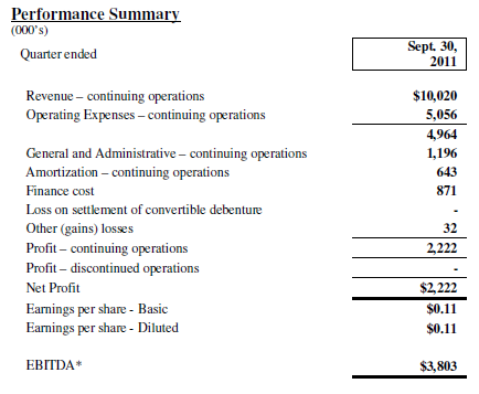 The company generated $2.2M of earnings (11 cents per share) in Q3 off of $10M of revenue.