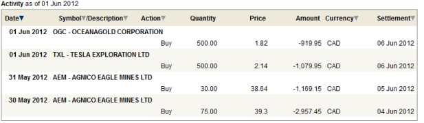 I finally had timing on my side with these purchases. Yesterday gold and gold stocks took off after the dismal employment report. I was pleased that in my review of the carnage after the market closed, that because of the outperformance of the gold stocks, I was actually up a reasonable amount in my portfolio. This despite the fact that Newcastle and PHH got clocked pretty hard, and the oil stocks I own, Mart, Equal and Pan Orient succumbed to the pressure of falling oil prices and oil stock malaise.