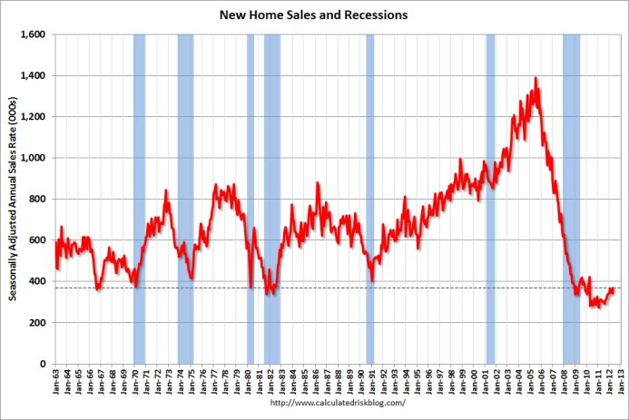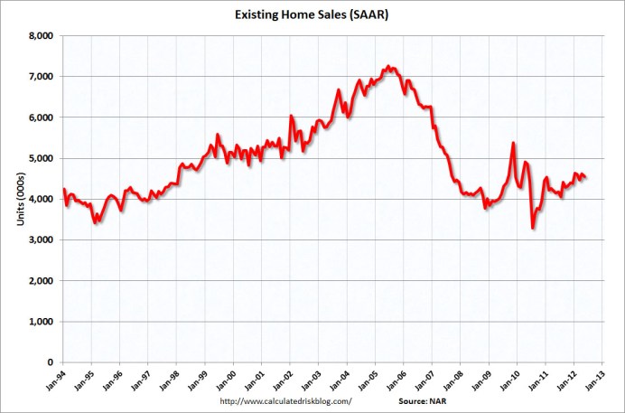 A look at charts of new home sales and existing home sales (taken from CalculatedRiskBlog) show a pretty clear bottom.