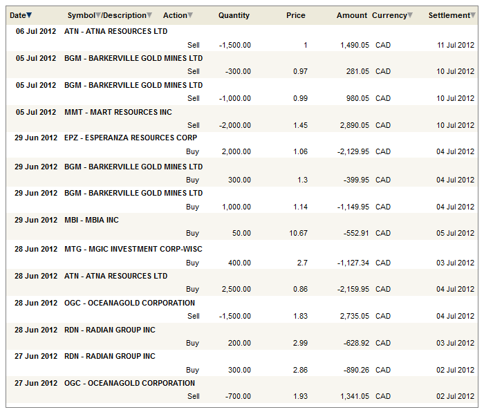 Mart released news earlier this week that they were going to provide a quarterly dividend of 5 cents a share and a special dividend of 10 cents. They announced the pipeline deal a week before that. The stock is still cheap; it trades at maybe 4x cash flow (which does not consider the production expansion that will come in the next year) and at a rather silly 14% yield. I’ll probably buy back in at some point, maybe even soon. I just don’t love the way the market is behaving, in particular the way that Spanish bonds have jumped back to nearly 7% and so I am reluctant to . I also don’t rally buy this oil rally; it seems prefaced on Middle East tensions and that is fickle mate. Mart, having moved so much higher so fast, seems like it would be likely candidate for portfolio trimming if oil drops again below $80. I’ll wait this out and see what happens over the next couple of weeks.