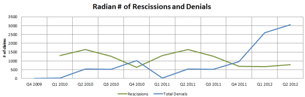 I understand the concern; the rescission and denial rates for Radian are high, both historically and versus their competitors. I have no answer as to why they are consistently higher than MGIC. But Iargue that Radian has been running at higher rates since Q1 2011, and with most of the claims from Q1 to Q4 2011 resolved, the evidence is clear that Radian was right on the mark, if not a bit conservative, in its assumptions. Whether this continues with the recent trend of increased denials is open for debate, but as I pointed out, the data we have so far (Q4) again points to the accuracy of Radians estimate.