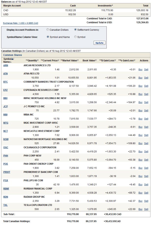 (note that US stock prices are converted to equivalent Canadian dollar prices)