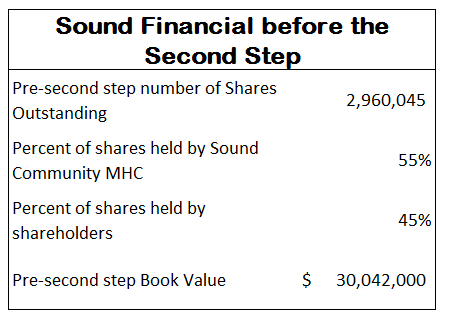Let’s take a look at the conversion just completed by Sound. In Sound’s case, the mutual holding company, called Sound Community MHC, owned 55% of the shares outstanding before the conversion took place, with common shareholders owning the other 45%.