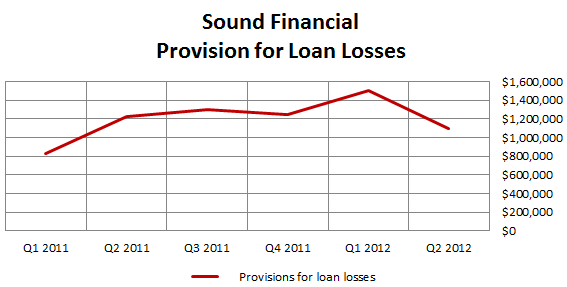 Nevertheless, earnings have been significantly reduced from what they could have been by the provisions that have been made to loan losses. Provisions for loan losses were $1.5 million in the second quarter and $2.6 million in the first half of the year. Provisions were more than double what earnings were. Going back a couple years, Sound has been consistently taking provisions in the range of $1 – $2 million per quarter.