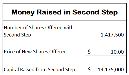 The second step conversion took the 55% ownership of the mutual holding company and sold it to shareholders for $10.00 per share.