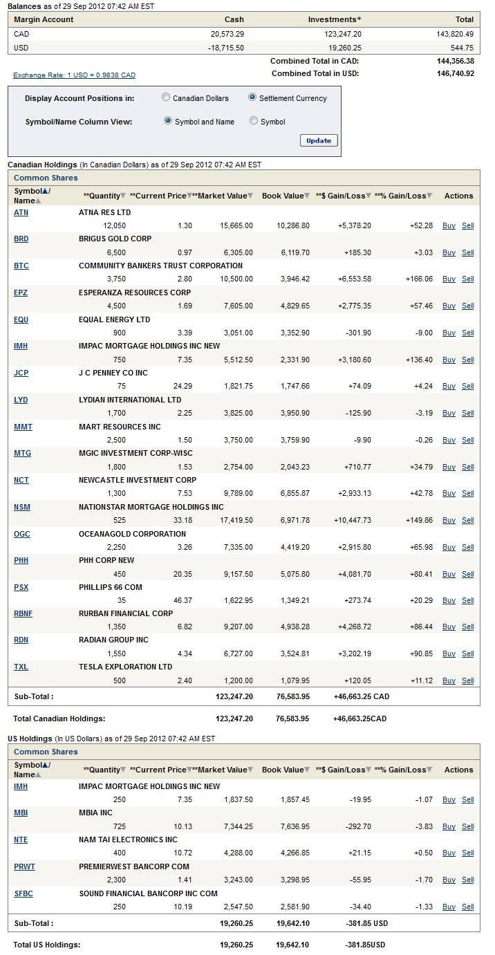 - Note: I have begun to add all new US holdings in US dollars. This will make it easier to distinguish between US dollar and CDN dollar holdings. However, I cannot move currencies for existing stocks and preserve gains so existing US stocks in the portfolio will continue to show up in the CDN Holdings portfolio
