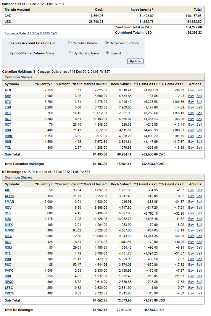 Apart from Nexen, which was a special situation, the other stock positions are small, and were initiated because I thought the stocks warranted further review. This is my process. I like to add stocks that look promising, which incentivizes me to look at them closer. This technique might not be for everyone, but it works for me.