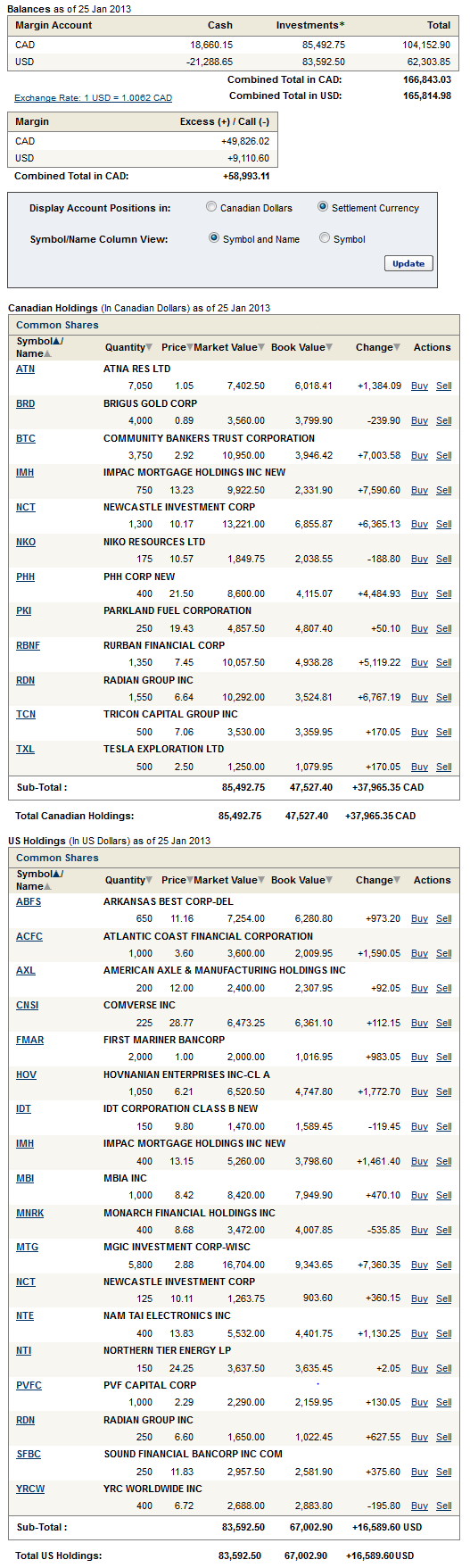 I’m working on a full post of my thoughts on Tricon Capital (TCN.to) so I will only make some limited comments here. I learned about the stock from a friend over a month ago and watched it run up from $6 to $6.75 before finally taking a piece. Its a tricky stock to evaluate, having both an asset management business in addition to the on-balance sheet residential housing that drew my interest. It isn’t so much an intrinsic value story as it is an event-driven one – if the company can continue to purchase blocks of homes cheaply and build their portfolio, so should the stock move higher. Management has shown its ability to do that with the recent purchase of properties in Charlotte North Carolina for what appears to be quite a cheap price. I’ll write more about the name shortly.