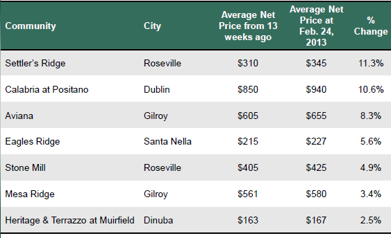 I also added a small amount to my position in Hovnanian after listening to the company’s first quarter conference call on Friday. The home building business seems to be progressing well. The company provided the following table of price increases occurring in Northern California over the past 13 weeks. Northern California was one of the hardest hit markets during the crash and is also an area where Hovnanian holds a lot of undeveloped, mothballed land.
