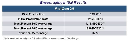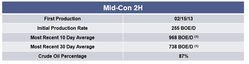 For comparison on April 4th, when Gastar announced the Hunton transaction with Chesapeake, they provided the following table showing the production of the Mid-Con 2H well: