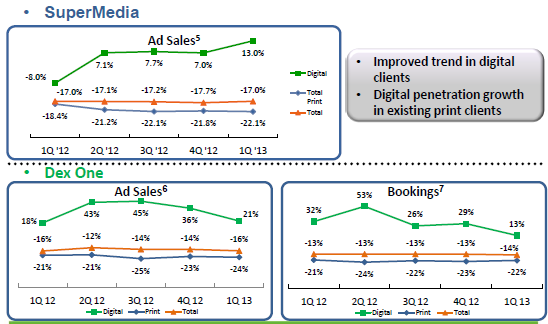 So it all rests on the outlook. Here is the revenue growth of Dex Media’s digital business, and the declines in the print business, that the forecast is based on.