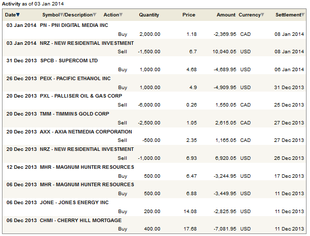 I lightened up on a few positions in the last month. To recap briefly: I explained my position in New Residential in my last update and that my bullish outlook had made my position larger than my liking. I expected that if the thesis played out the way I anticipated that I would be reducing it to a more normal size in short order. I did just that in the last few days of the year, taking a ~15% gain in a little over a month as the stock rallied to over $6.90.