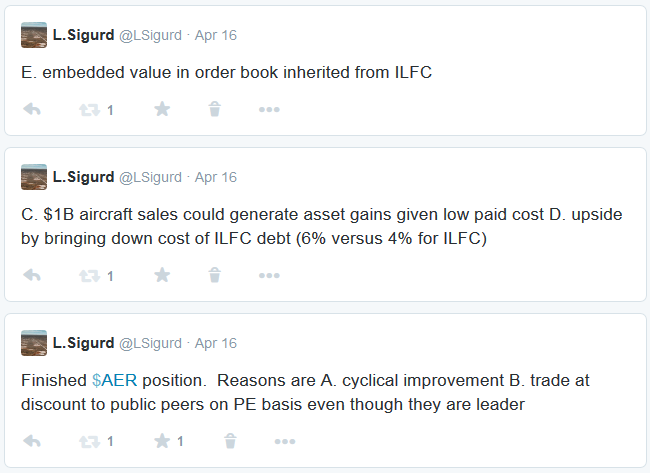 I first bought Transat A.T (TRZ.B) on March 19th and have added to it a few times since then. I made the following tweets at the time (read from bottom to top):