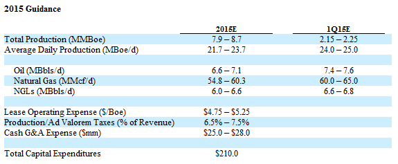 So to put everything in like terms, guidance is suggesting oil production of about 2,518MMbbl, natural gas production of about 21,000MMscf and NGL production of about 2,300MMbbl. That means they have about 92% of oil production, 93% of natural gas production and 66% of NGL production hedged at decent prices for 2015. The volumes hedged for 2016 are not far off that.