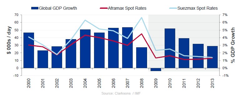 I get the feeling that Deutsche Bank, and presumably many others, are basing their conclusions on the narrative that tankers are a fragmented industry that has never and will never get their shit together.  The problem with this narrative is that its not really historically accurate.