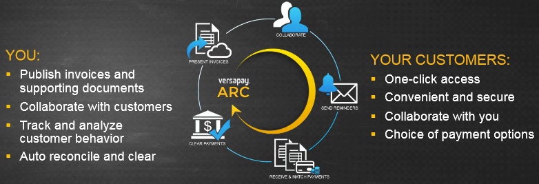 Recently though Versapay expanded their offering to include a B2B e-commerce platform called ARC, or Accounts Receivable Cloud. ARC is aimed at small to medium sized business and provides an accounts receivable process for business to business transactions. Below is a slide from the company presentation that gives a high level overview of ARC’s functionality.