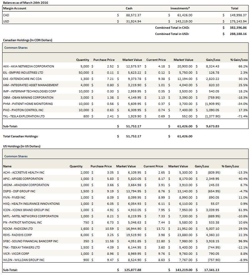 See the end of the post for the current make up of my portfolio and the last four weeks of trades