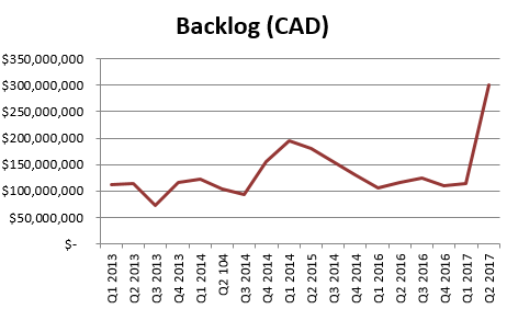 Including both of these new contracts, the companies backlog stands at roughly $300 million (CAD).