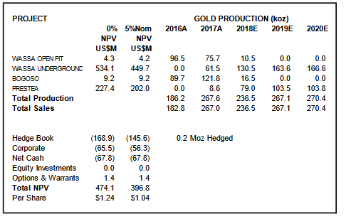 I think that one of the problems Golden Star has had is that reserves for both Wassa and Prestea underground are limited. Mineral reserves for Wassa are 742,000 ounces which they say is about a 5 year mine life. Similarly Prestea has reserves 463,000 ounces, which works out to a 5.5 year mine life.