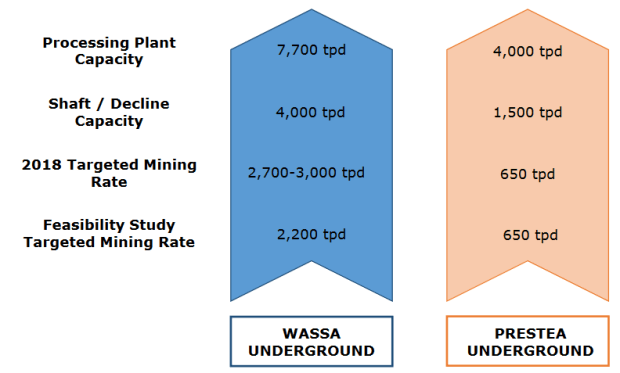 Wassa could easily expand its mine rate by 30% before having to expand the shaft and decline. Prestea could more than double production before having to do so.